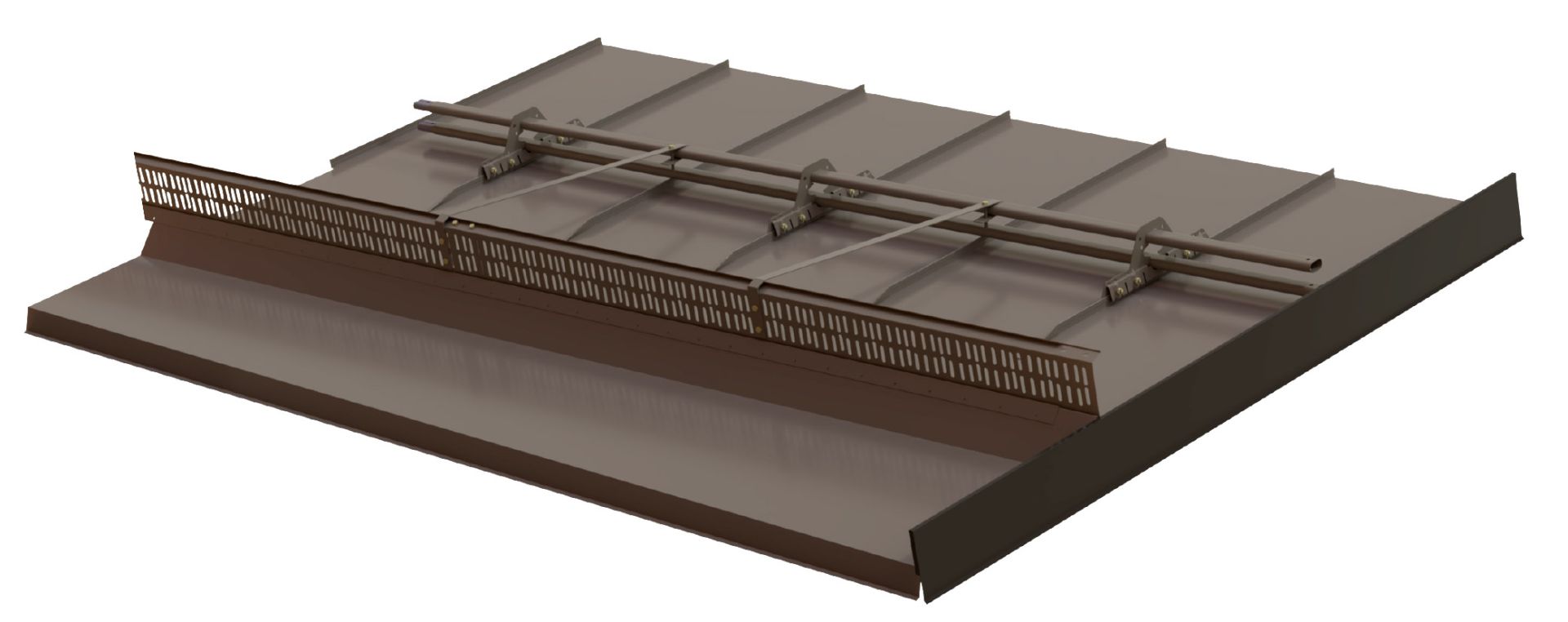 - Ritilä- ja putkilumieste kiinnitetään kone- ja lukkosaumatulla peltikatolla pystysaumoihin puristamalla. Ritilälumiesteen alareuna lovetaan.