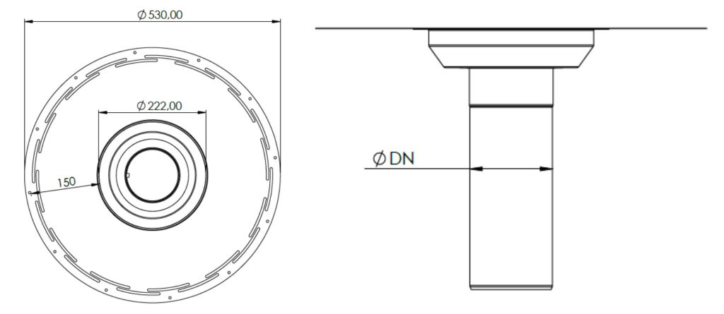 - Tuote suunnitellaan poistoputken koon sekä laatan paksuuden mukaan.